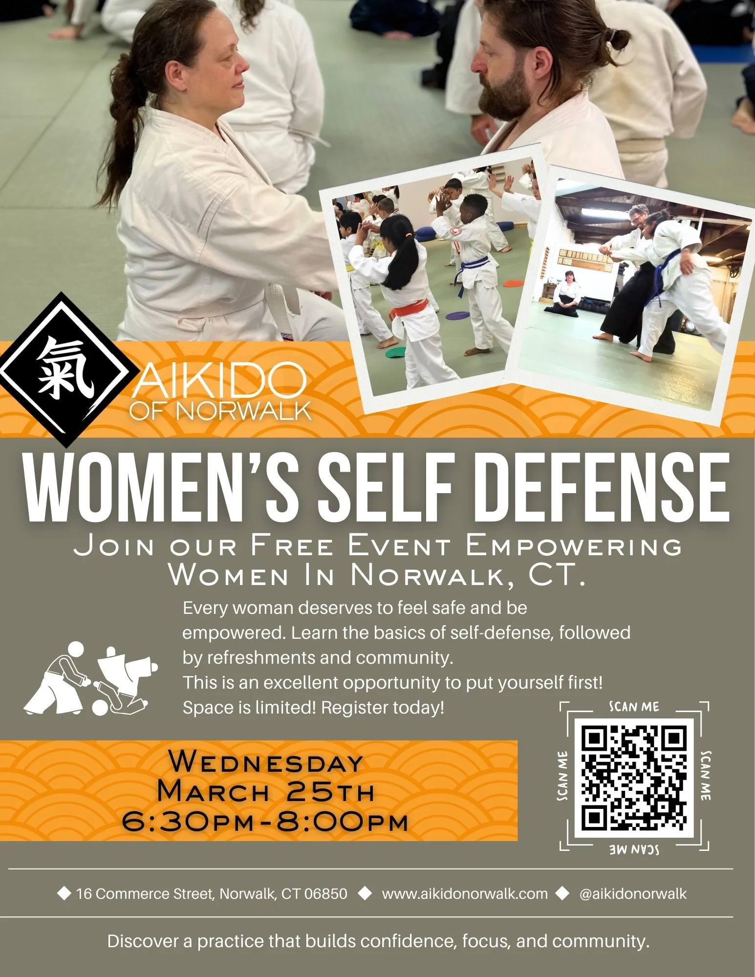 Every woman deserves to feel safe and be empowered. Learn the basics of self-defense, followed by refreshments and community. This is an excellent opportunity to put yourself first! Space is limited! Register today!