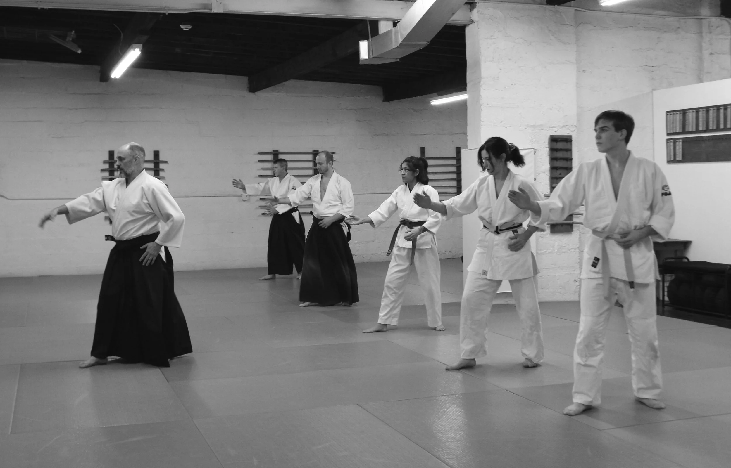The roots of Kongōshinkan Dōjō are deeply tied to the story of Yanagi Aikido Dojo, founded in 1999 by Guilbault Sensei. A few years later, Goldstein Sensei stepped forward as co-dojocho to help teach and manage operations. Over the years, Yanagi Aikido practiced in several spaces, including Norwalk Community College, before establishing a permanent home at 16 Commerce Street in 2004.